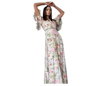 This floral print gown features a surplice neckline and can be paired well with any sandals.