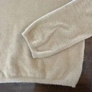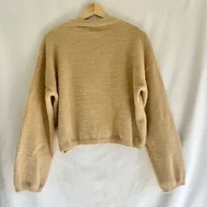 Keywords: Princess Polly, fuzzy sweater, knit sweater, cropped sweater, beige sweater, pullover sweater, cozy sweater, jumper, crew neck, long sleeve, womens sweater, casual sweater, fuzzy knit, balloon sleeve