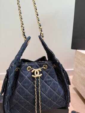 Luxury 25C Hobo Bucket Bag 26cm Quilted Denim Drawstring Shoulder Bag