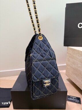 Elevate your luxury collection with this iconic 25C Hobo bucket bag, crafted in premium quilted denim with a timeless vintage wash.