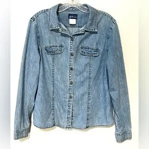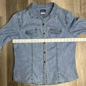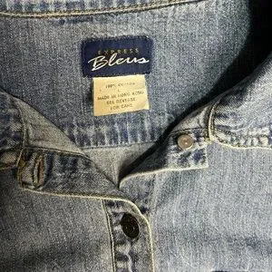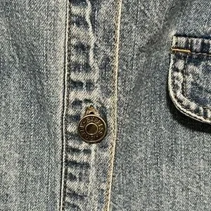 Vintage Express Bleus Blue Denim Distressed Button Long Sleeve Shirt Jacket LG