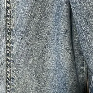 Can be worn as a shirt or over a tee or as a very lightweight jacket. Cool distressed vintage vibe.