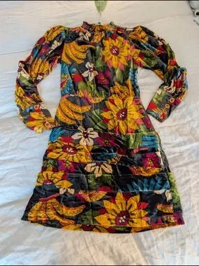 NWT Farm Rio Macaw Ballet Velvet Mini Dress - XS Long Sleeve Mock Neck