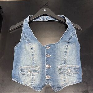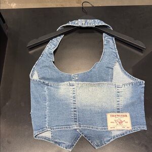 True Religion Light Blue Denim Crop Vest