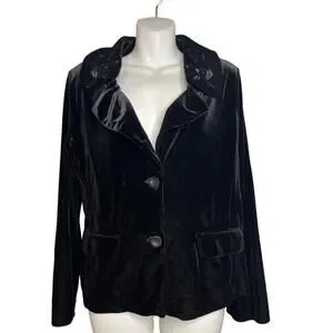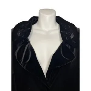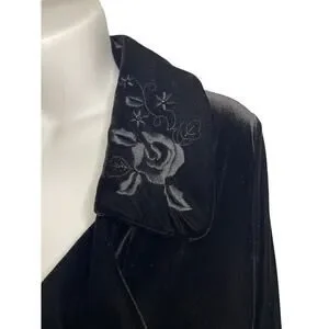 White Stag Black Velvet Embroidered Floral Collar Front Button Blazer Women's Sm