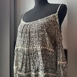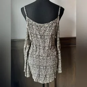 Maurices Black and Cream cold shoulder boho hippie Patterned Blouse M
