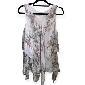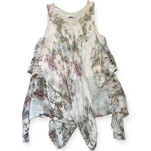 Silk Ruffle Asymmetrical Flowy Blouse Top Women’s size L