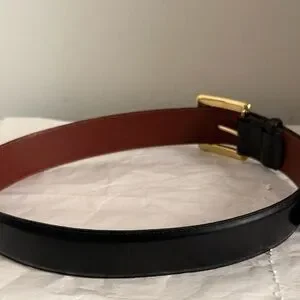 Vintage Coach Black and Brown Leather Dress Belt Brass Gold Buckle 8511 Medium