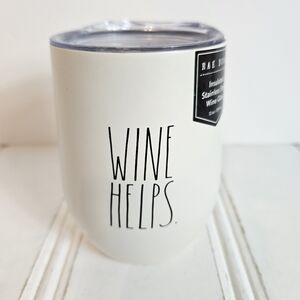 Rae Dunn “Wine Helps” insulated stainless steel wine tumbler with clean minimalist lettering and farmhouse aesthetic. 12oz double-wall insulation keeps drinks cold or warm longer. Lightweight, durable, and perfect for on-the-go, girls nights, or cozy evenings. A functional statement piece for wine lovers and aesthetic home setups.