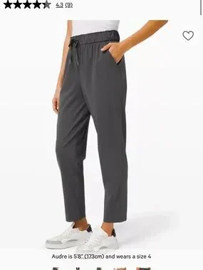 Straight leg silhouette from lululemon athletica. Elastic waistband with drawstring. Clean, minimalist design. Versatile black color for everyday wear.