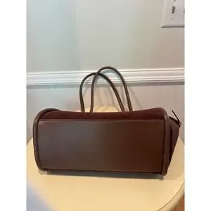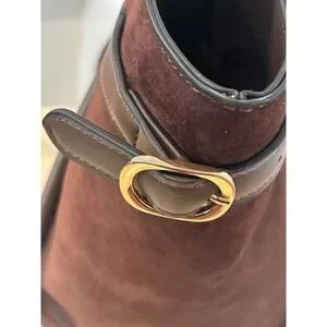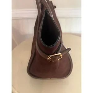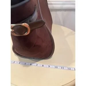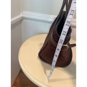 ASOS DESIGN Brown Faux Suede Tote Bag Tan Trim Gold Buckle Large Shoulder Bag