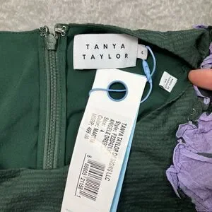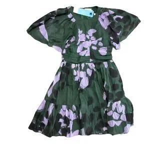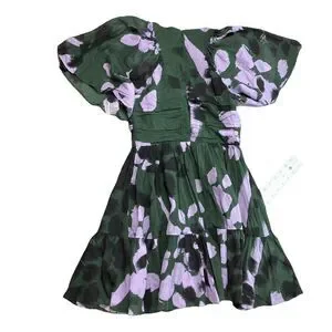 Tanya Taylor Angele Dress Womens S Green Floral Silk Flutter Sleeve Mini Spring