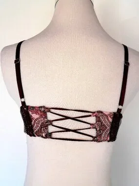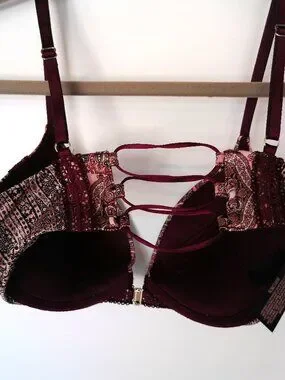 Victoria's Secret Very sexy push-up bra Size 32D Plum & Black Paisley Pattern