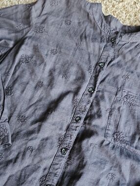 Pilcro By Anthropologie Black Shirt with Subtle Embroidered Flowers Size Small
