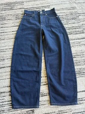 This piece features a high-rise silhouette with a statement barrel leg that hits right at the ankle, with front angled pockets, two back patch pockets, and made of premium organic cotton