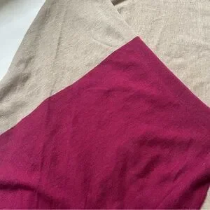 Gently worn MODA international color block off the shoulder poncho sweater size medium/large. Cotton and cashmere blend. Oatmeal and purple color-way. Two flaws shown in last photos. Otherwise in great, pre-owned condition.