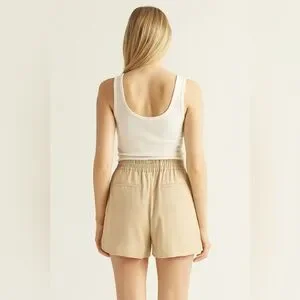 New without tags. Elizabeth and James Easy Shorts High Waist Tan. Size XS, but I’m wearing a size 6 right now and they fit me perfectly, so they are definitely oversized. Front and back pockets. Unlined. Soft material. Elastic waistband.