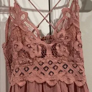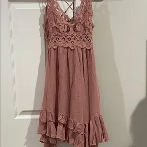 Free People One- Lace Bodice Tiered Ruffle Sundress - Dusty Rose- Size Small