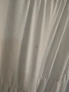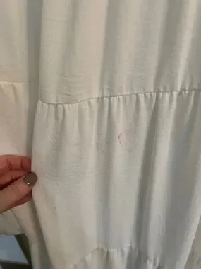 Has small makeup stain in the back, can be washed out. Other than that, perfect condition.
