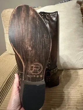 NWT Roper Miranda Dark Brown Studded Round toe Harness Riding Boots 7.5