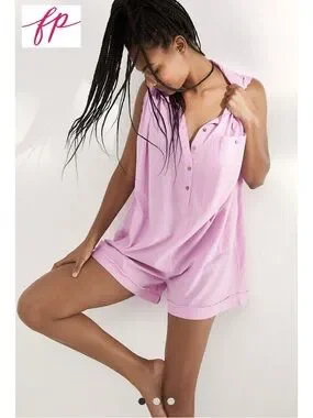 Slip into effortless comfort with this Free People Intimately Jomo Romper, a laid-back essential in a dreamy lilac + soft pink striped combo. Designed with that signature Free People oversized, relaxed fit, this piece is perfect for lounging, travel, or that effortlessly cool model-off-duty / boho vibe.