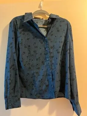 croft & barrow Blue Floral-Print Button-Front Shirt