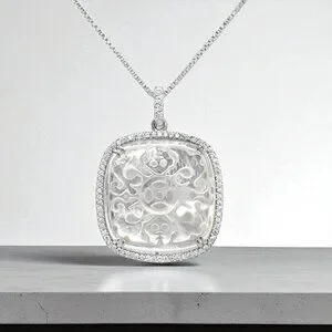 Carved Mother-of-Pearl and CZ Pendant in 925 Sterling Silver