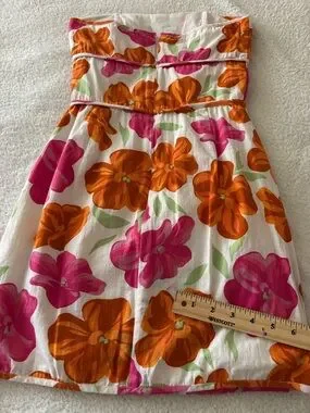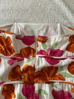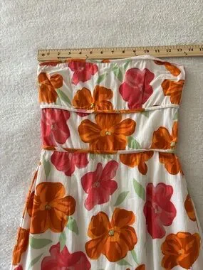 SABO Strapless Floral Mini Dress in White with Pink & Orange Blooms Size XS