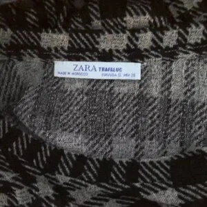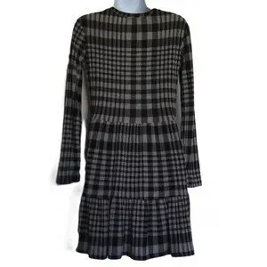 Zara Trafaluc houndstooth plaid dress, size small, pullover, lots of stretch, black and light beige, gently ruffled bottom hem, long sleeve...