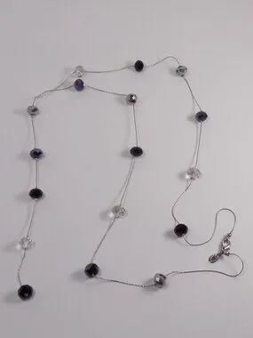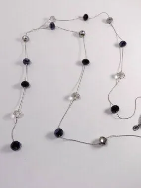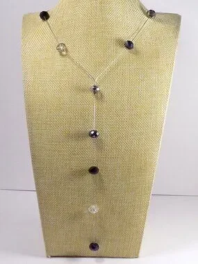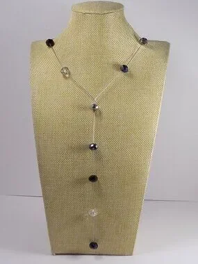 Ali-Khan New York Y Drop Necklace Silver-tone Long 34" Faceted Crystal Beads
