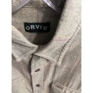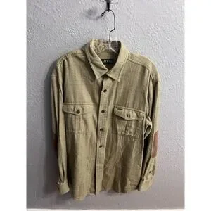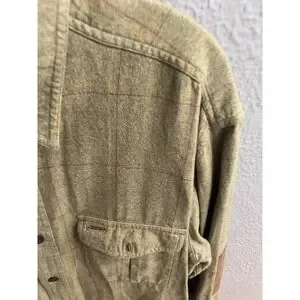 Orvis Long Sleeve Shirt Green Window Pane Suede Elbow Men Size Large