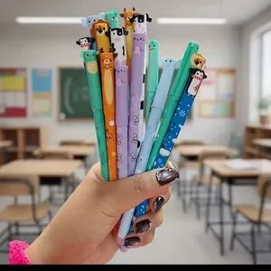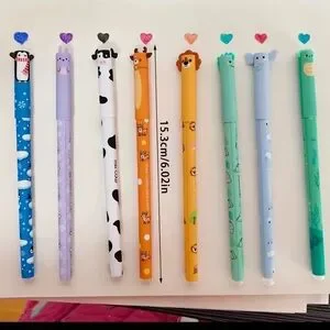 Cute Animal Cap Erasable Gel Pens Set of 8 - Assorted Colors for Kids and Adults