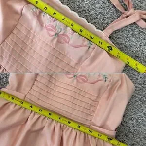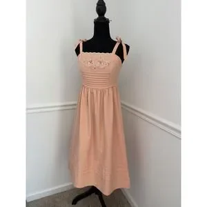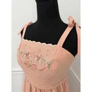 Vintage Vicky Vaughn Peach Floral Embroidered Smocked Midi Sundress 70s XS/ S