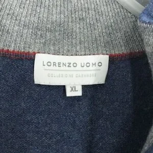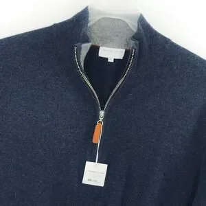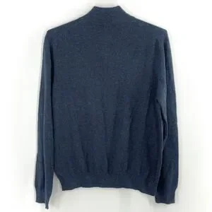 Upgrade your wardrobe with this Lorenzo Uomo men's 1/4 zip sweater in size XL, new with tags. Crafted from a premium blend of 70% extra fine merino wool and 30% cashmere, this piece offers exceptional softness, warmth, and comfort without bulk. The classic denim blue color and minimalist design make it perfect for business casual, office wear, or layering year-round. Features a quarter zip closure with a stylish leather zipper pull for an elevated touch. This sweater delivers a refined, luxury feel at a great value. New condition with original tags attached. Please compare these measurements with a similar garment you own to ensure proper fit.