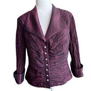 Jackie Jon New York Jacket Crinkle Crushed Burgundy Dressy Y2K SZ 10