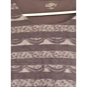 Ann Taylor Loft Women's XS Lace Brown Stripe 3/4 Sleeve Blouse Boho Lightweight