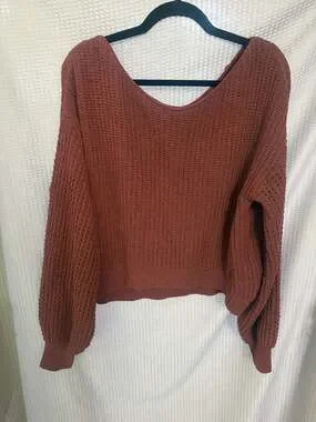 rue21 Rust Chunky Knit Cropped Balloon Sleeve Sweater Size M