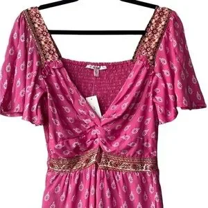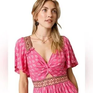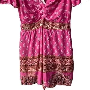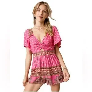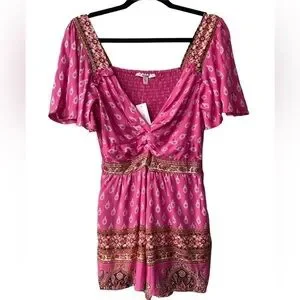 Francesca's Boho Romper Small NEW Cut Out Festival Western Coastal Cowgirl Pink