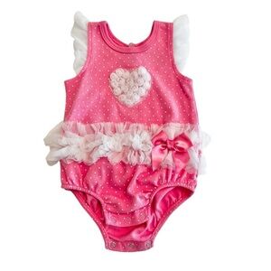 💫$6/ADD ON 💫 Pink Polka Dot BABY 6-9 MTHS Romper w/Tulle Heart, Ruffles, & Bow