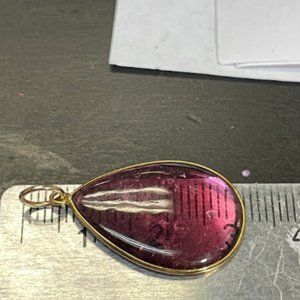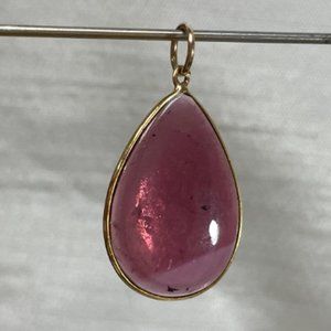 6CT Natural Purplish Fuschia Tourmaline Pear Shape 14K Yellow Gold Pendant 25mm