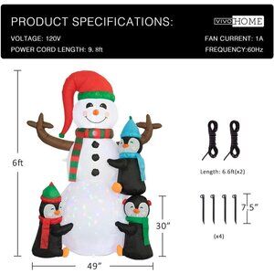 🆕6FT Christmas Inflatable Snowman with Penguin LED Lights Outdoor Decoration