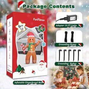 Adorable 6FT Giant Inflatable Gingerbread Man Create a magical Christmas welcome with this adorable 6-foot inflatable gingerbread man! Featuring a friendly waving gesture and a sweet, warm smile, he's designed to spread festive cheer in your yard. With built-in bright LED lights, he remains beautifully visible at night, making him the perfect choice for Christmas party decorations, Christmas Eve celebrations, and outdoor yard decor
