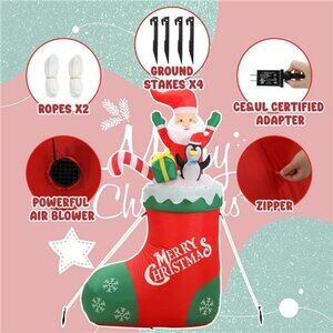 Easy Setup: Installing the Christmas blow up is a breeze. Simply plug it in, the Merry Christmas inflatable will inflate in seconds with the powerful built-in air blower, then fix it to the ground with stakes and ropes to make it more stable. It also deflates quickly and can be easily stored in a compact space.
