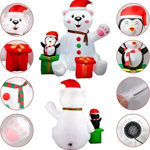6FT Christmas Inflatables Polar Bear w Penguin Yard Decorations w LED Lights