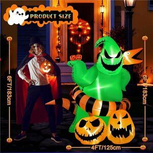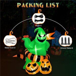 【Package included】 This Halloween decorations include a 6FT tall Green Monster Pumpkin Inflatable Decoration with 6 built-in lights, 2 fixed sandbags, 2 ropes, 2 buckles, 6 ground insertions, 1 UL plug, 1 fan, 1 instruction.