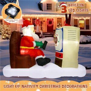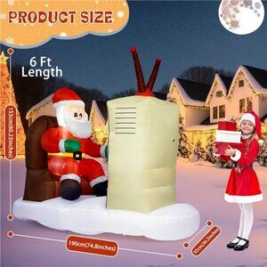 6FT Inflatable Christmas Santa Claus with TV Decorations Christmas Blow Up Yard