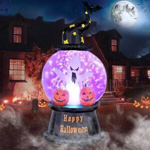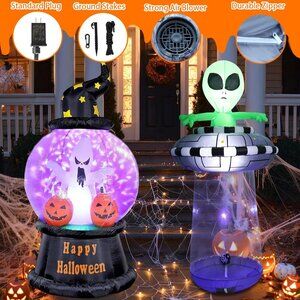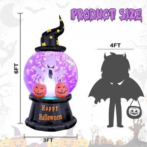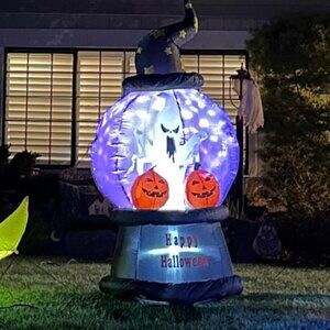 * 【Halloween Inflatable Snow Globe】Standing 6 feet tall, this giant Halloween inflatable snow globe features a spooky ghost and twin jack-o'-lanterns inside a swirling LED-lit globe, instantly catching the eyes of neighbors, trick-or-treaters, and party guests