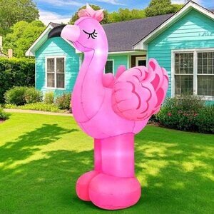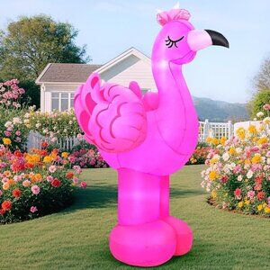 * Giant Inflatable Flamingo: You will receive a brand-new 6 × 4.3 × 3.6 FT blow up flamingo decoration, including a fan, grounding post and rope, water bag, transformer adapter plug, exquisitely packaged in a box. This is the best summer gift that Hawaii can give to its friends. Placed on the beach, in the courtyard or garden, it can create a strong Hawaiian atmosphere and bring the coolness of summer.