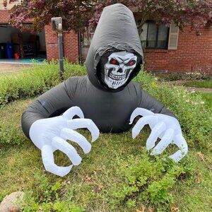* Eye-Catching Design: Giant grim reaper with large white talons, this inflatable decoration seems like realistic, giving a sense of oppression to be caught by the creepy devil. It's also a good idea to put it on your roof, seems like a devil break out of the house.