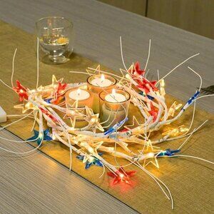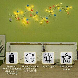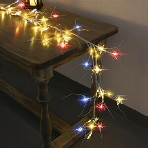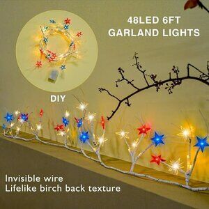 6ft Birch Garland features captivating red white blue colors. With 48 LED lights, including 32 star lights and 16 regular lights, along with 8 large branches (24 small branches), it adds a vibrant visual effect to your celebratory events.